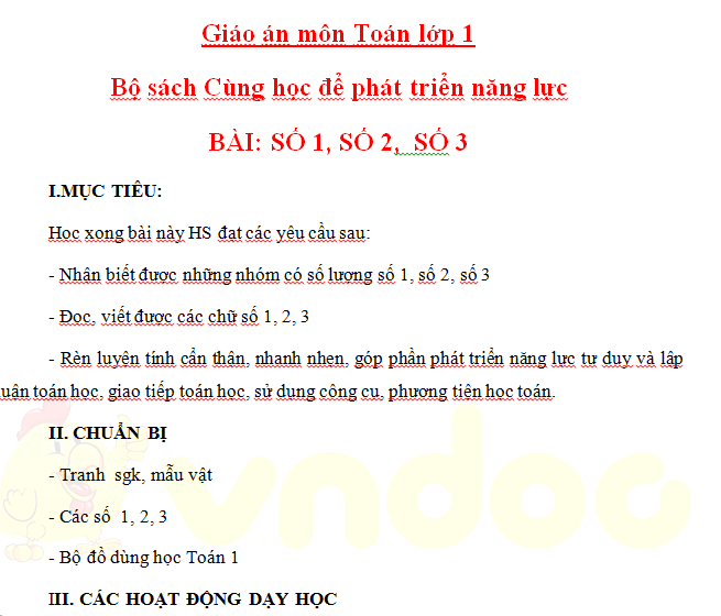 Giáo án môn Toán lớp 1 bộ sách Cùng học để phát triển năng lực giúp thầy cô giáo lớp 1 lên kế hoạch soạn giáo án cụ thể cho năm học mới 2020 – 2021. Quý thầy cô cùng tham khảo nhé. Nguồn: VNdoc Link tải về: TẠI ĐÂY